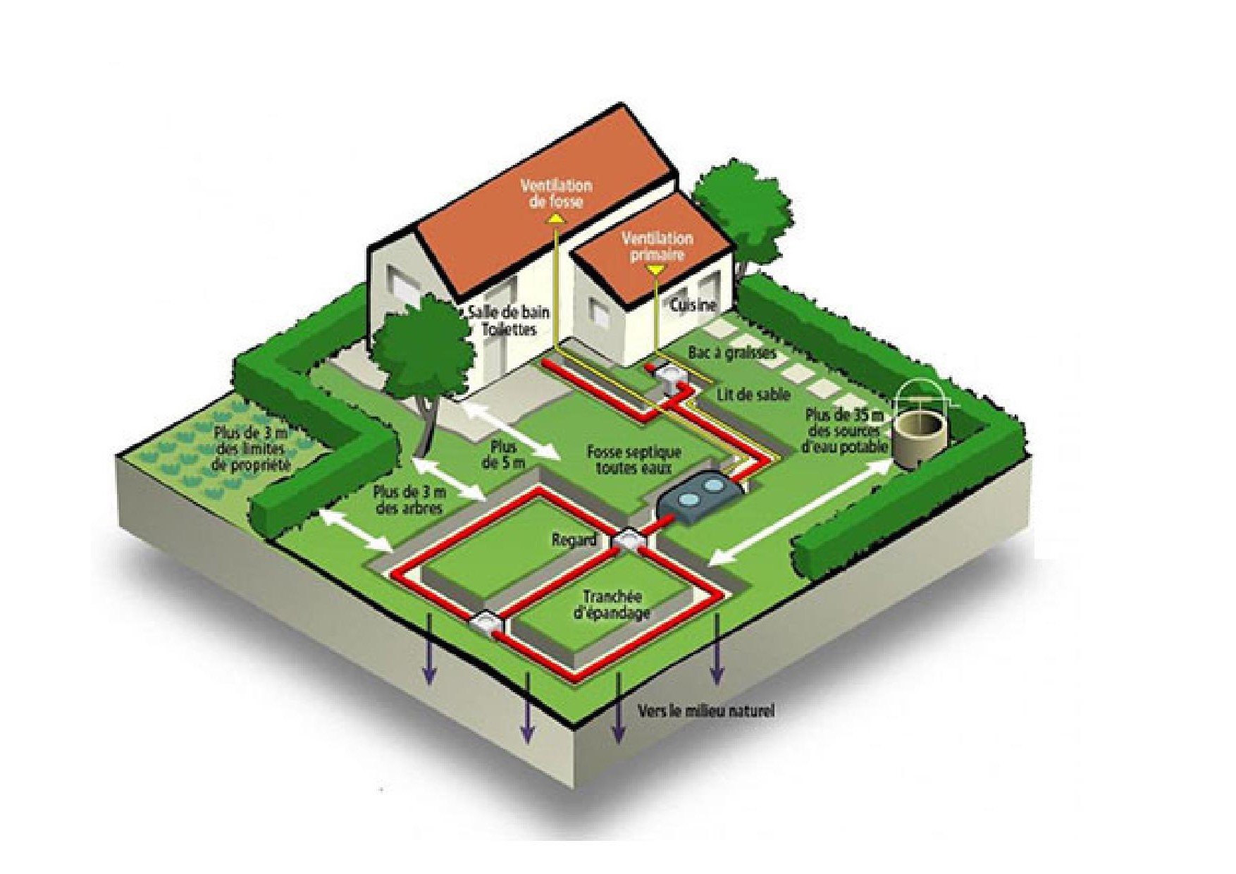 Schéma indicatif des normes d'une fosse septique toutes eaux