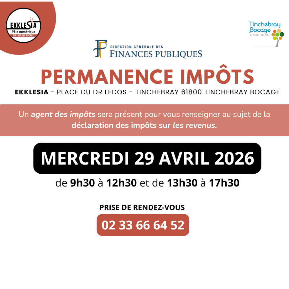 Un agent des impôts sera à l'Ekklesia le mercredi 29 avril 2026